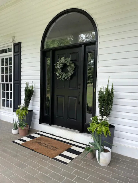 Her Home: When she moved into this charming house, she was filled with excitement about all the projects she wanted to tackle. One of her main goals was to give the front door a fresh new look. Originally, the door was a vibrant red, a color that just didn’t resonate with her style. So, she decided to paint it a sleek black, but it quickly turned into a much bigger undertaking than she had anticipated. Additionally, she realized that the retractable door and window screens located beside the door were also missing, leaving a noticeable gap in the home’s beautiful final design.